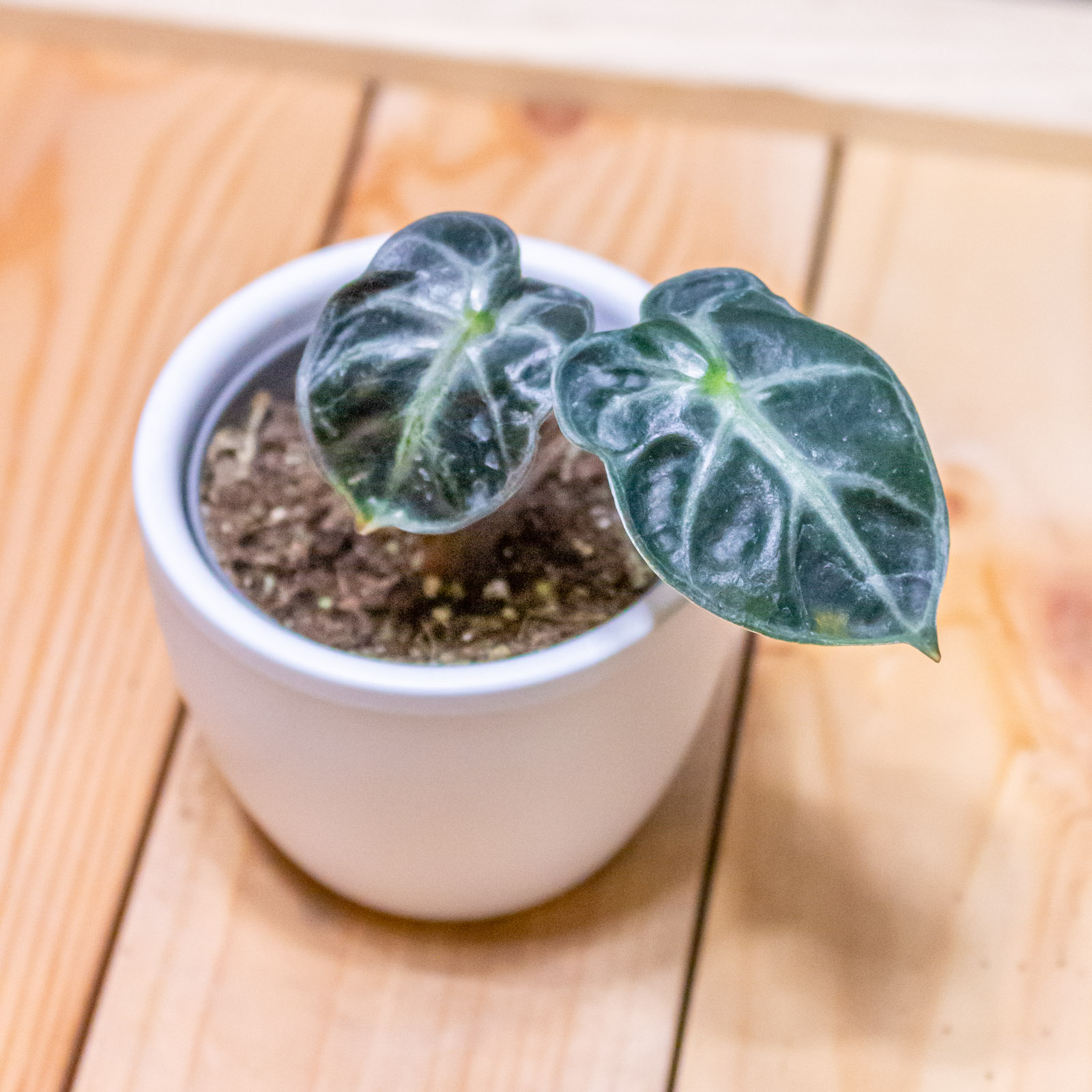 Alocasia Balloon Heart 6 cm-es cserépben. Átlagosan 10 cm magas.