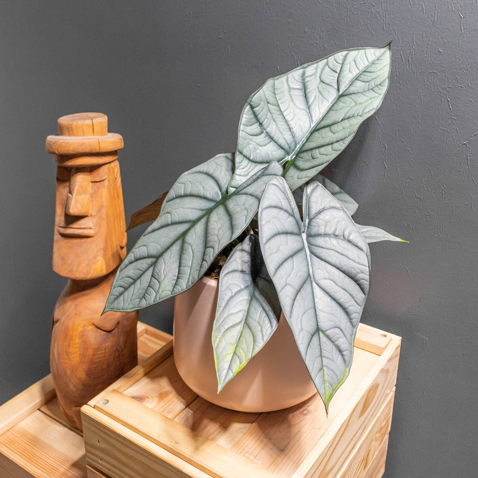 Az Alocasia egy Ázsiában őshonos növény, melynek szépségét a nagy levelek ( akár 40 cm ) és azok mintázata teszi ki. Színét tekintve hibridtől függően jelenik meg a zöld rengeteg árnyalata, de akár lila és ezüstös színekkel is díszítheti otthonunkat. Igényei egyedüggőek, de általánosan elmondható róluk, hogy a meleg, párás környezetet kedvelik, minél több szűrt fénnyel. Az Alocasia hálás faj, tavasztól-őszig gyorsan hajt nagyméretű leveleket, vagy akár virágot is, télen viszont tartsuk száraz meleg helyen, ekkor ugyanis a rizómába húzódik vissza. Az Alocasia mérgező faj, ezért gyermektől és háziállattól tartsuk távol.