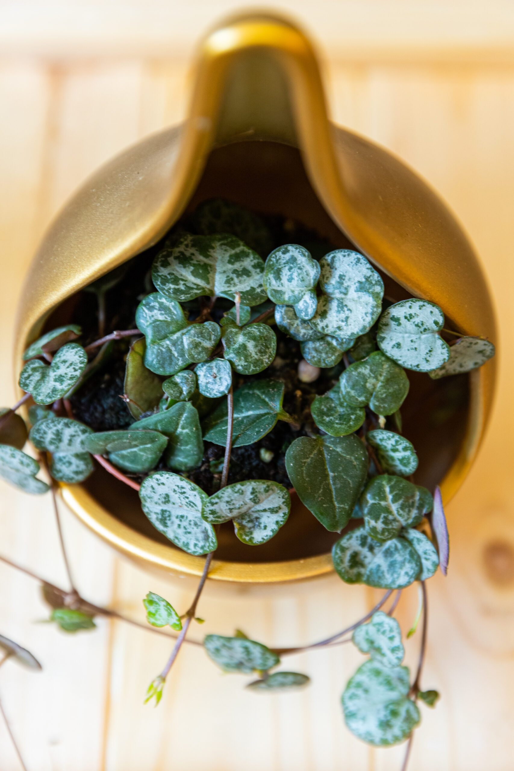 Ceropegia Woodii 8 cm-es cserépben. A növény átlagosan 15 cm hosszú.